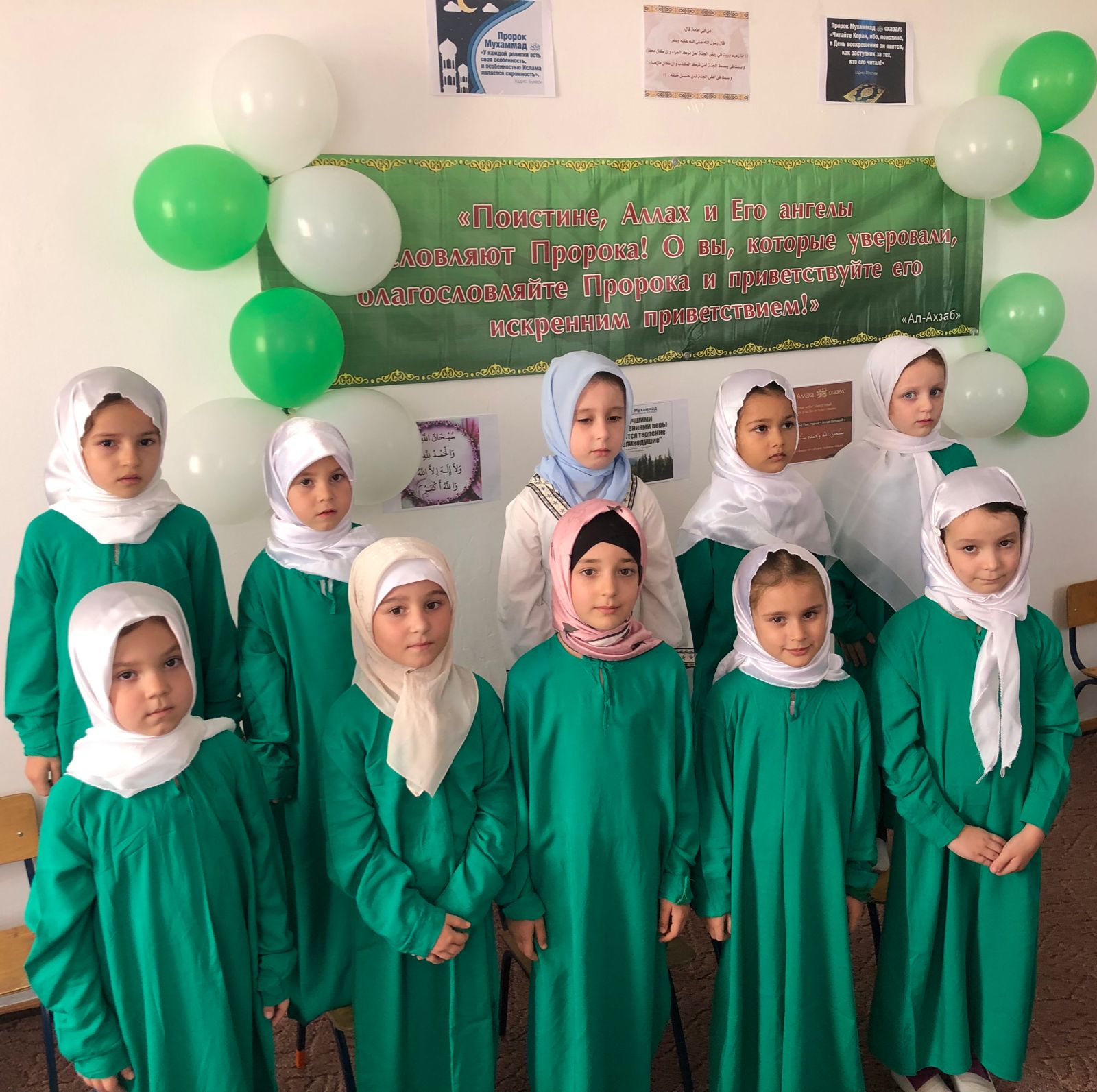 В ДОУ весь месяц проходили ряд мероприятий посвященных Пророку Мухаммаду («Да благословит его Аллах и приветствует»). Для младших дошколят проводились беседы о жизни пророка, а для воспитанников старших групп были организованны конкурсы на знание подвигов пророка. Фасад садика украшали плакаты с аятами и именем пророка.
